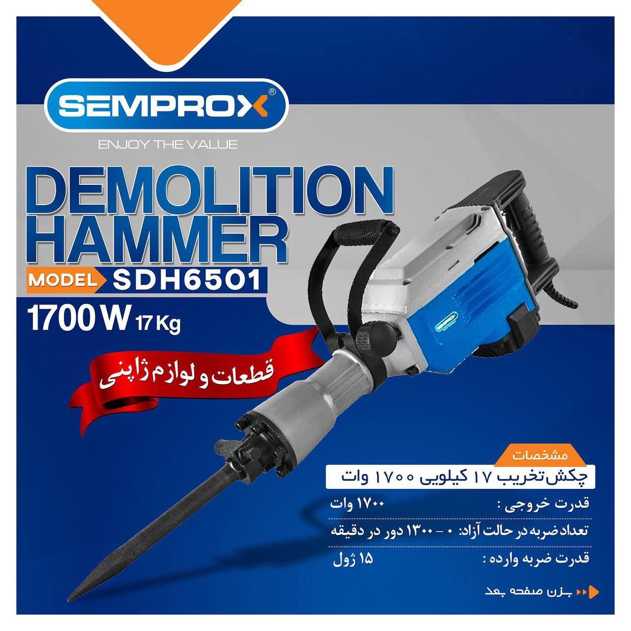 🔻 چکش تخریب ۱۷ کیلویی👉🏻 ♦️مدل: SDH6501 🔻ابزارآلات برقی و حرفه ای سمپراکس🔺️ ◽ارتباط با مشتری: ☎️ ۰۲۱۶۷۱۳۶