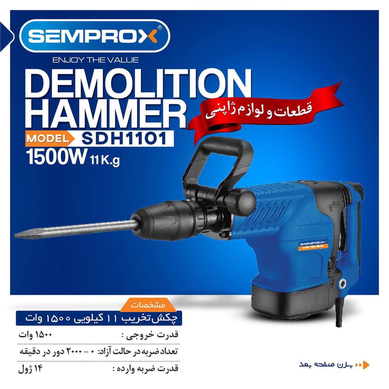 🔻 چکش تخریب ۱۱ کیلویی👉🏻 ♦️مدل:SDH1101 🔻ابزارآلات برقی و حرفه ای سمپراکس🔺️ ◽ارتباط با مشتری: ☎️ ۰۲۱۶۷۱۳۶
