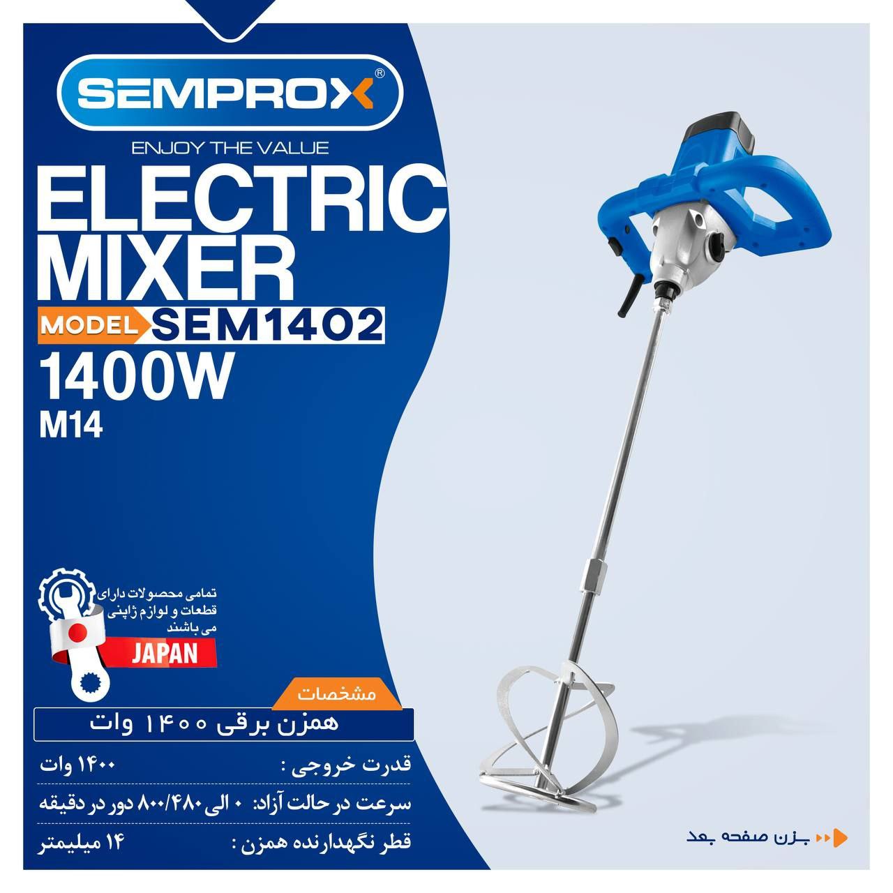 🔻 همزن برقی۱۴۰۰ وات 👉🏻 ♦️مدل:SEM1402 🔻ابزارآلات برقی و حرفه ای سمپراکس🔺️ ◽ارتباط با مشتری: ☎️ ۰۲۱۶۷۱۳۶